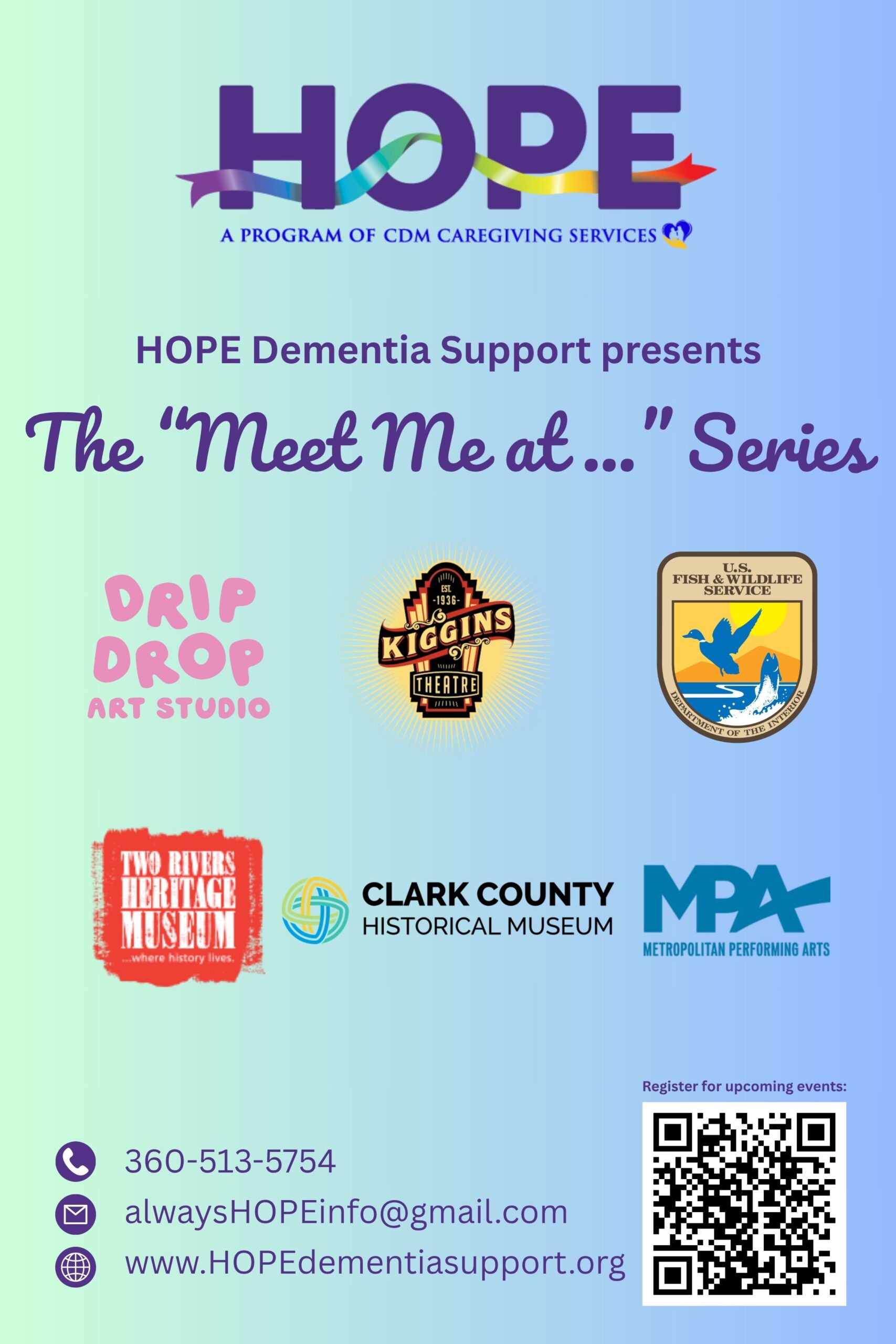 Interested in this program? Register here: Eventbrite Registration for “Meet Me at” Series or contact our HOPE team by phone 360-513-5754 or email at alwayshopeinfo@gmail.com.